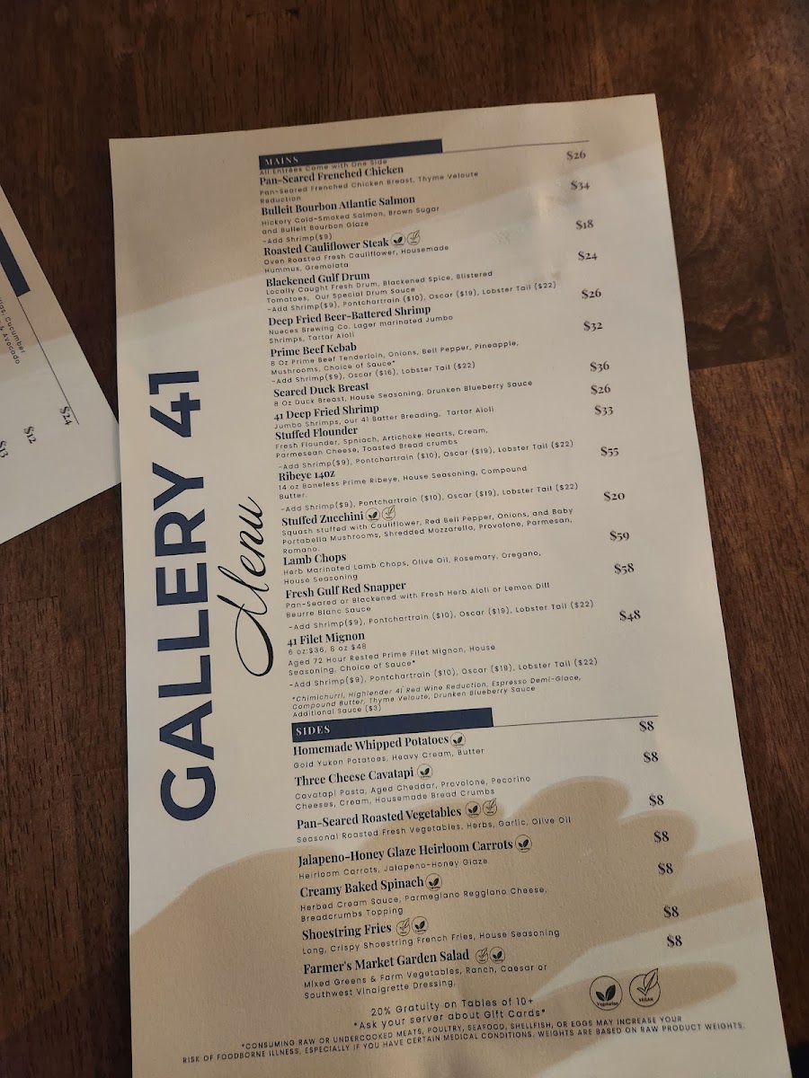 Welcome to Gallery 41 Water's Edge Grill, a culinary gem situated on the picturesque shoreline of Corpus Christi, Texas. This vibrant eatery boasts an impressive menu that captivates both locals and visitors alike.